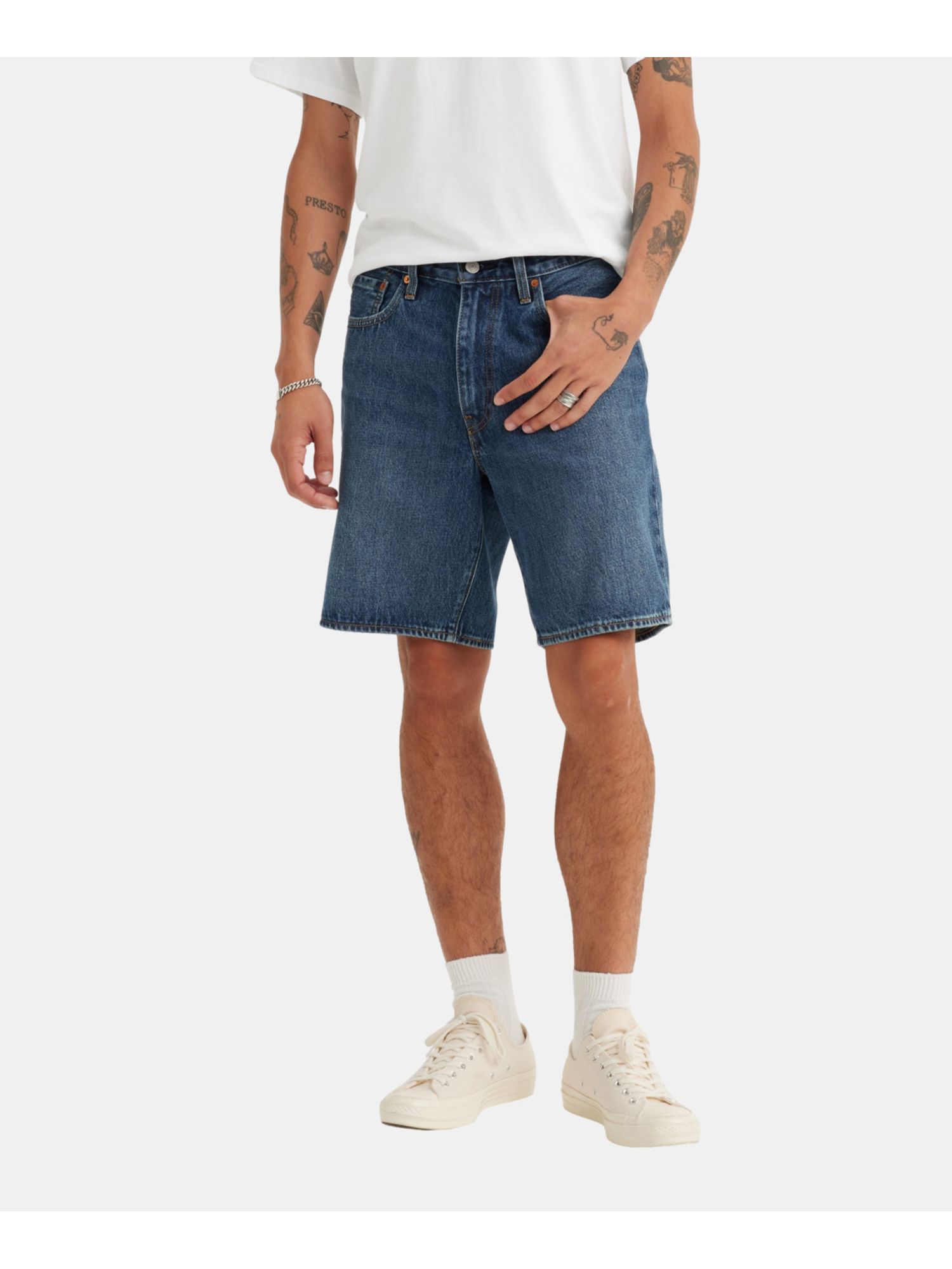 Shorts Hombre 468 Loose Shorts Levi's: Los shorts perfectos para un estilo relajado y cómodo. Confeccionados en denim de alta calidad 100% algodón, estos shorts te brindan una sensación suave y transpirable durante todo el día. Su corte holgado permite una total libertad de movimiento, mientras que su tiro medio y largo por encima de la rodilla los hacen ideales para cualquier ocasión casual. Los detalles clásicos de Levi's, como la etiqueta de cuero en la parte posterior y los remaches distintivos, añaden un toque de autenticidad a tu look. Combínalos con tus zapatillas favoritas y una camiseta básica para un estilo effortless y a la moda.